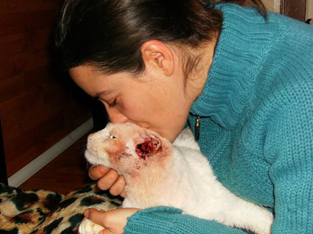 Con él aprendimos lo que es un CARCINOMA DE CÉLULAS ESCAMOSAS, y lo que les pasa a los gatos blancos cuando están expuesto al sol sin protección solar en sus orejitas y nariz.