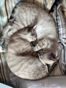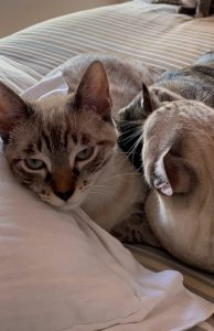 Les gusta cuidar a sus humanos! Siempre pendientes de qué hacen y dónde están para seguirlos, dormir cerquita (ahora les ha dado por dormir en la almohada), limpiar las orejitas, la nariz, el pelo de los humanos… Unos amores
