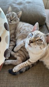 Les encanta estar encima y recibir toda la atención que puedan. Se llevan muy bien con otros gatos y con otras personas