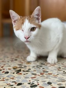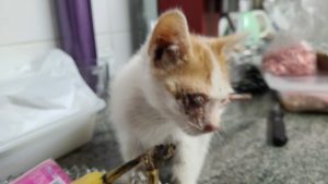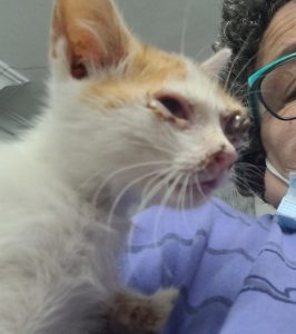 Ahora ya está estupendo y tiene el alta. Hace vida totalmente normal. Es un cachorrito muy juguetón y simpático, convive con mas gatitos.