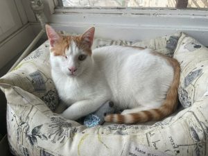 07/01/2022 Matxi, en su casita de acogida, Moody, es un gatete simpático, juguetón y muy majete. se lleva genial con sus dos hermanos gatunos. Por lo que creemos que lo ideal para el es una casa con mas gatitos