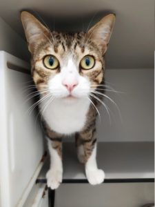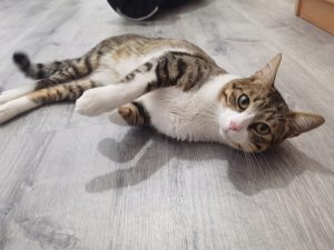 Ahora se encuentra acogido en casa de un compi. Es un gato tímido de primeras pero muy cariñoso. Aún está un poquito asustado, tiene que hacerse a los nuevos ruidos, a sus hermanitos gatunos.