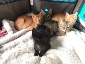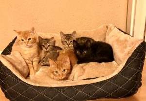 Los pobres nacieron en una colonia, su mami es una callejerita, les estuvimos controlando y cuando vimos que empezaron a enfermar; catarro, ojitos mal… nos pusimos en marcha para hacer todo lo posible y recogerles, aunque estábamos a tope 🙁